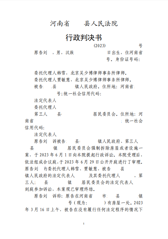 本案代理律師 北京吳少博律師事務(wù)所郭昌通 案情摘要: 無證房居住多年未辦證 被確認(rèn)為違建