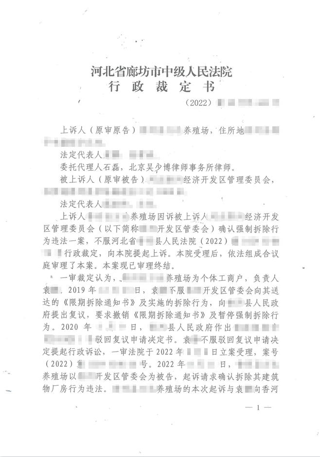 哈爾濱胡先生養(yǎng)殖場(chǎng)拆遷維權(quán)獲得滿意賠償